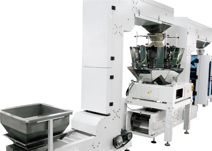 The system including Vibrator feeder, Z bucket conveyor, Working platform, Multihead weigher, Vertical form fill seal machine, Finished products conveyor, Dropper metal detector